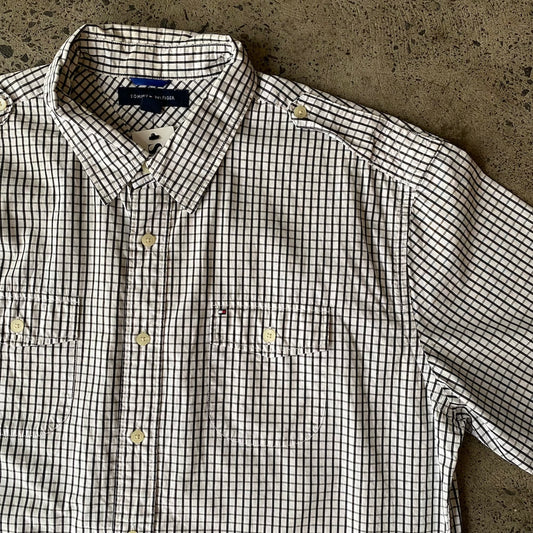 Graph Plaid Black/White Short Sleeve Button Up Tommy Hilfiger