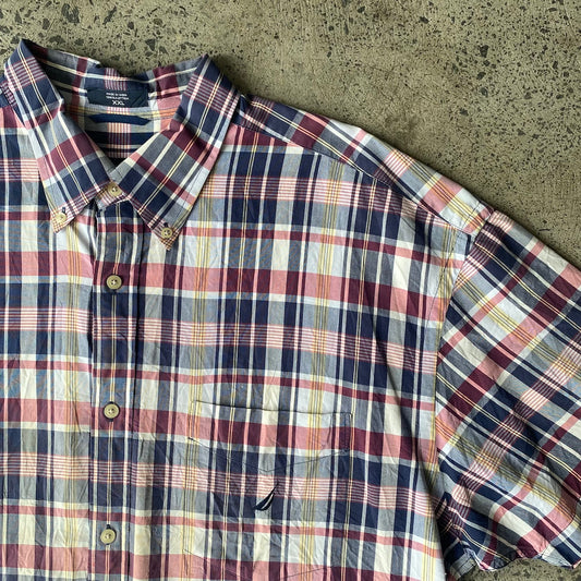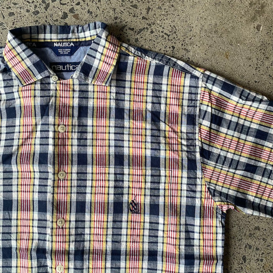Nautica Navy/Red/Yellow Plaid Short Sleeve Button Up