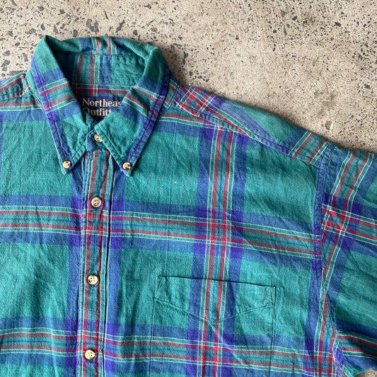Green/Blue/Red Tartan Short Sleeve Button Up