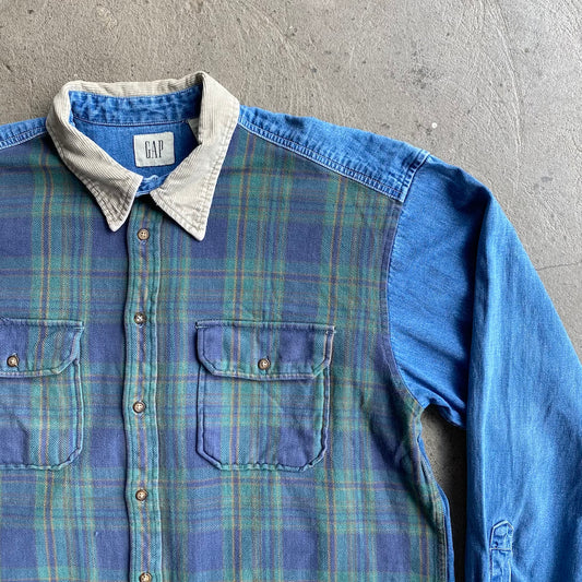 Gap Denim/Plaid Corduriy Collar Long Sleeve Button Up