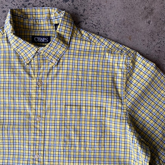 Yellow Chaps Plaid Short Sleeve Button up