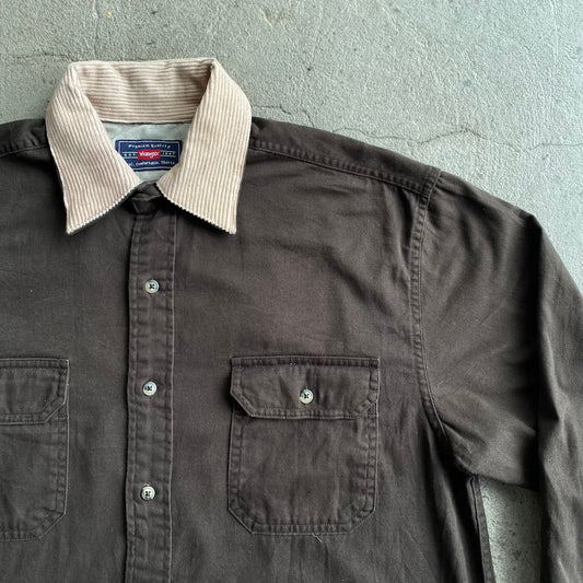 Wrangler Dark Brown/Black Tan Corduroy Collar Long Sleeve Button Up